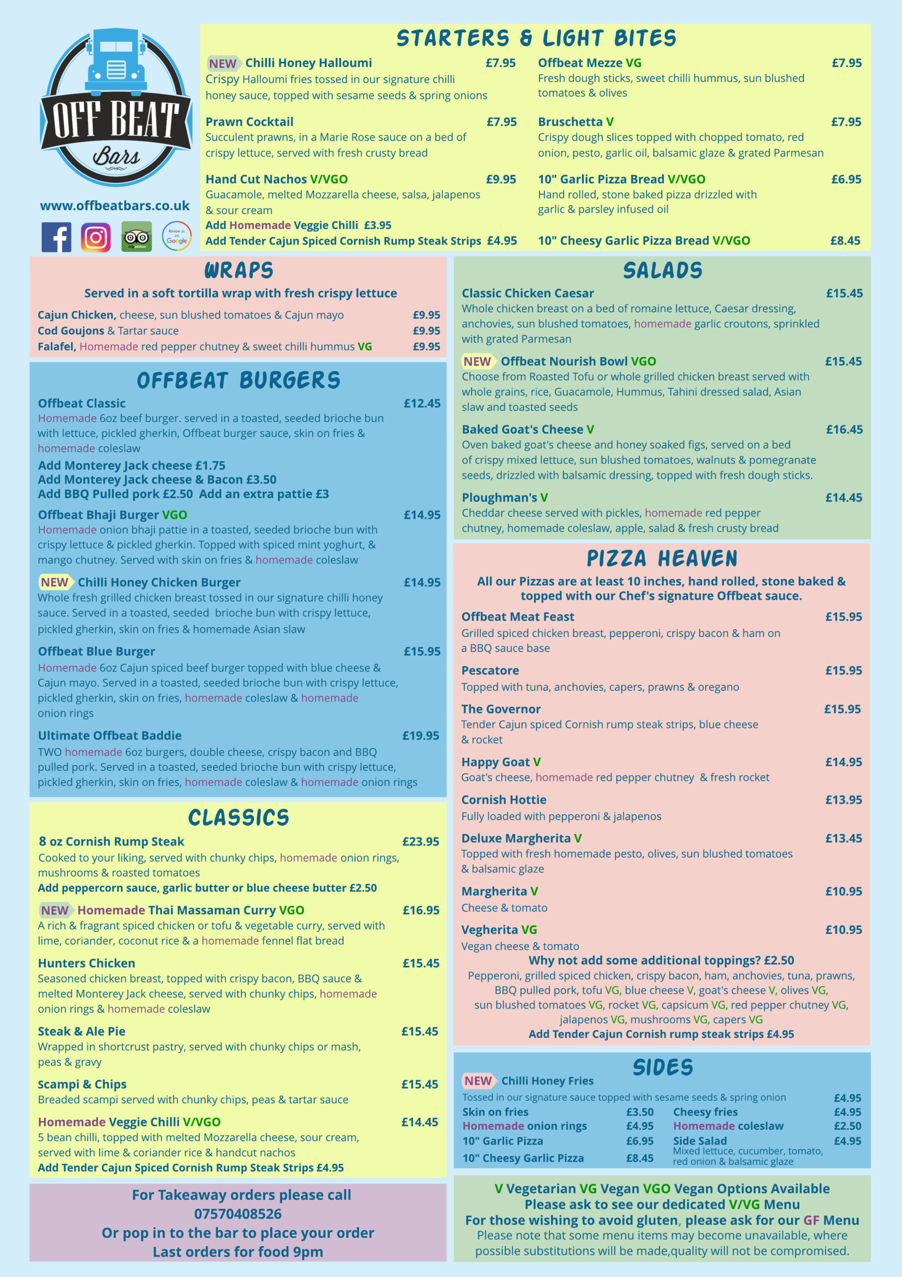 All of our menus are available to take away please call us on 07570408526 to place your order.