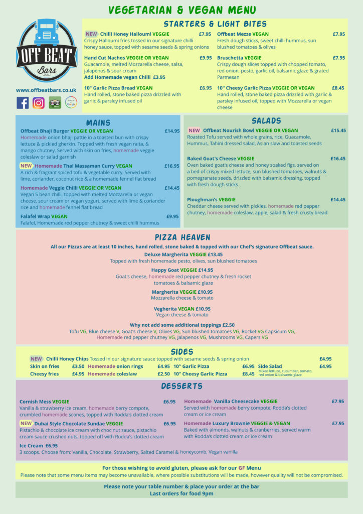 The Offbeat Bar & Kitchen Crantock is now closed for the 2025 season. We look forward to seeing you in 2026! Opening day is March 28th 2026.
